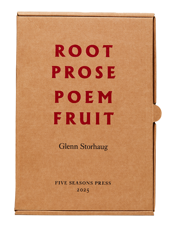 Five Seasons Press has published poetry, essays and broadsides for nearly fifty years in both special and trade editions. In-house letterpress has been the principal design and printing method, combined later with Linotype photo-typesetting and InDesign digital design/setting forwarded to litho book printers.